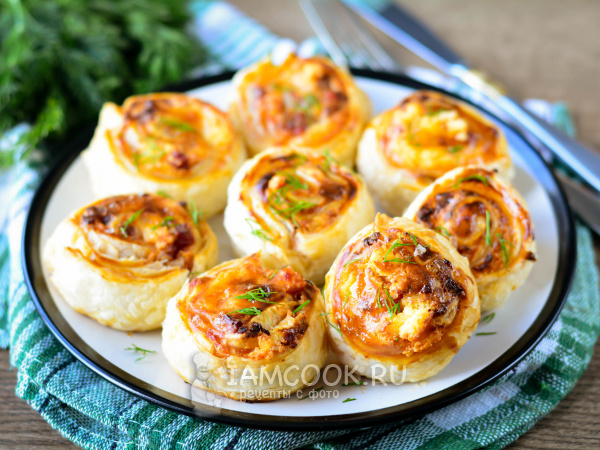 Мини-пицца «Улитка» (из слоеного теста)