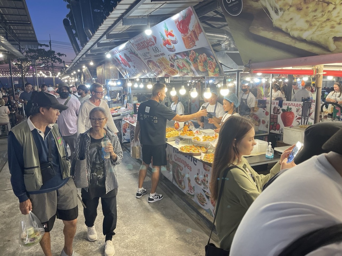 А вот на Pattaya Night Bazaar цены действительно впечатляют. Там тот же чемодан можно найти за 1100 бат, а кроксы — за 200 бат. Сувениры обходятся значительно дешевле, чем в других городах: тапочки можно взять за 200 бат, как и местные штаны с милыми слониками.