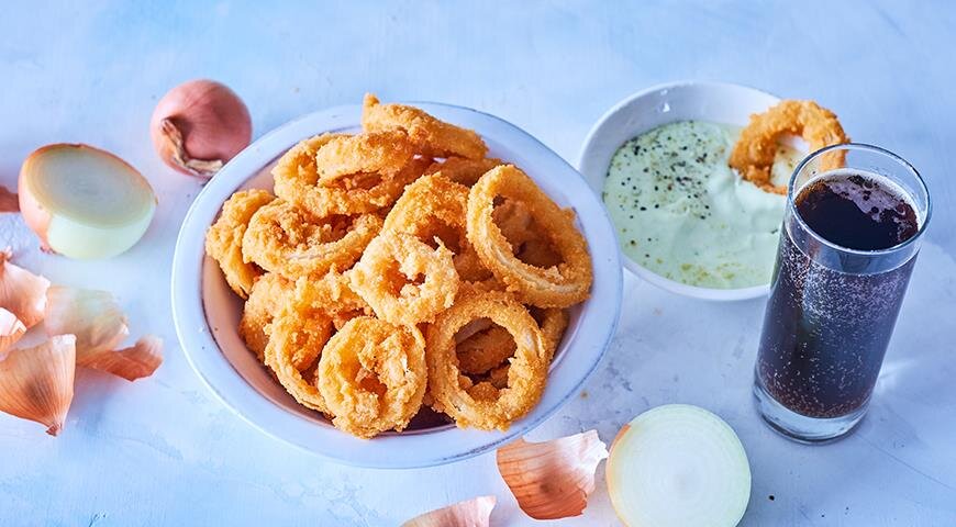 Луковые кольца, обжаренные до золотистой корочки, – это закуска, которая способна соперничать даже с популярными кальмарами в кляре. Их легко приготовить, а если добавить оригинальный васаби-майонез, то вы получите поистине креативный и вкусный перекус.