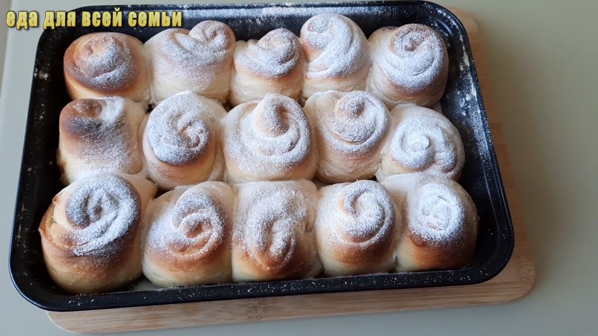 Сформированные булочки выкладываются на противень и оставляются на 20 минут. Тем временем включается духовка, и при температуре 160 градусов булочки выпекаются около 25 минут. Готовый продукт посыпается сахарной пудрой, и можно наслаждаться нежным десертом!