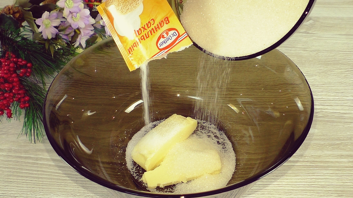 1. В глубокой миске соедините мягкое сливочное масло с щепоткой соли и сахаром. При желании добавьте ванильный сахар для аромата и перемешайте все ингредиенты до однородной массы — лучше использовать миксер.