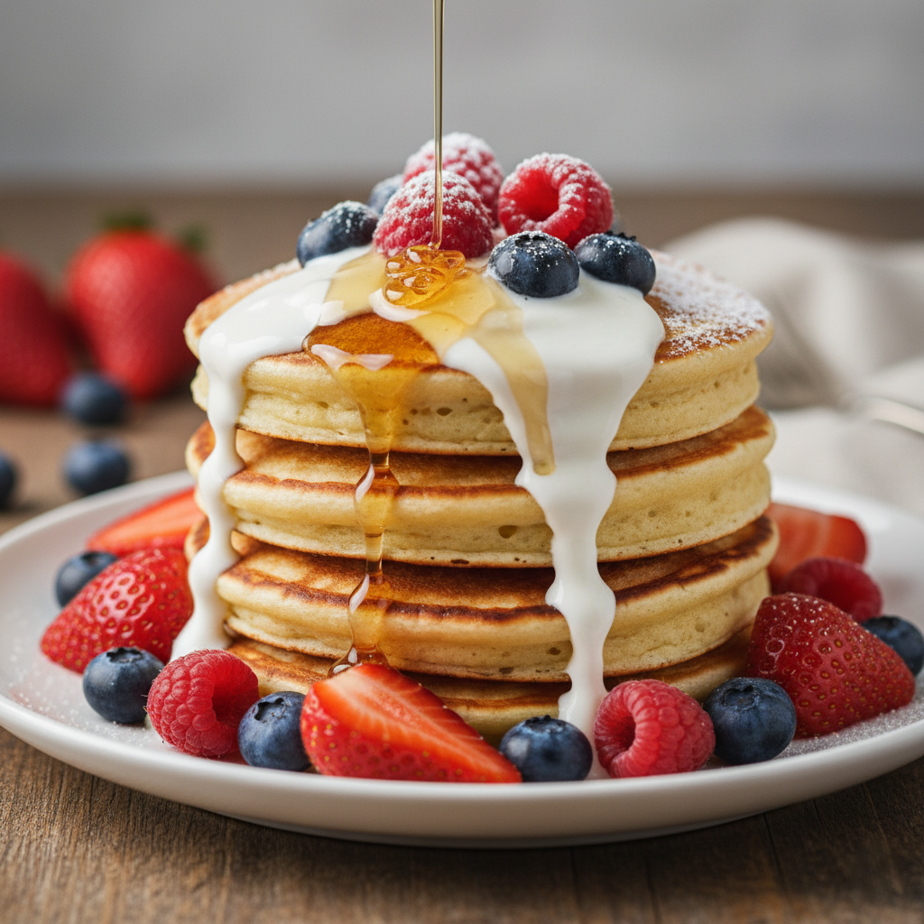 Ароматные панкейки — это ключ к хорошему утру. Они просты в приготовлении и порадуют как вас, так и ваших близких. В этом рецепте мы используем натуральный йогурт, мед и свежие ягоды, чтобы создать идеальное начало дня. Воспользуйтесь нашим рецепт на 1-2 порции, а если планируете накормить целую семью, просто увеличьте количество ингредиентов.