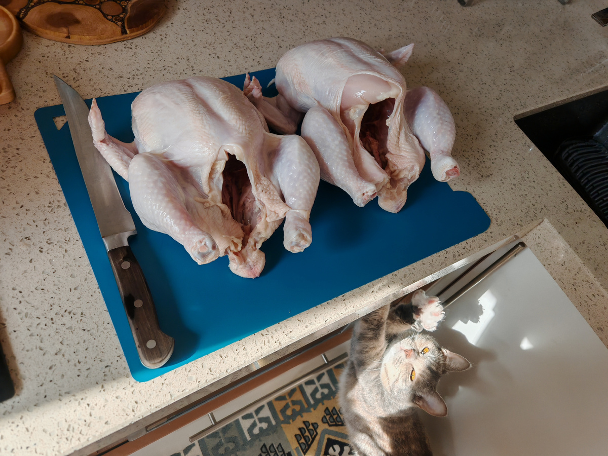 Перед тем как приступить к разделке курицы, ее необходимо тщательно промыть и высушить. После этого курицу разделяют: отрезают крылья, ноги и, при желании, готовят филе. Все части, кроме костей, можно использовать в будущем для супов или других блюд.