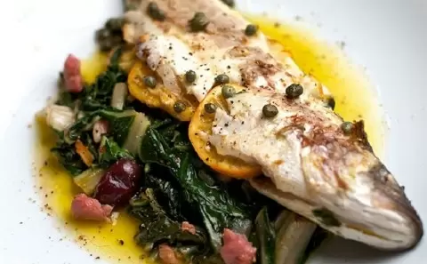 Маринад из свежих трав, лимонного сока и оливкового масла усилит вкус рыбы. К тому же, благодаря предварительной обжарке, сибас запечётся с хрустящей корочкой, что сразу же придаст вашему блюду ресторанный вид.