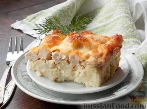 Запеканка из цветной капусты: Экспериментируйте с сочетанием цветной капусты и куриного филе, добавив сыр и сливки — запеченное блюдо станет настоящей изюминкой вашего стола.
