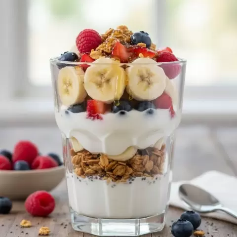 Этот утренний шедевр — это не просто еда, это настоящий заряд бодрости и вкуса, который проще готовить, чем кажется. Каждый слой этого парфе наполняется витаминами и приятными ароматами, создавая гармонию ингредиентов.