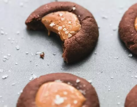 Сегодня в центре внимания — шоколадное печенье с карамельной начинкой, известное как “thumbprint cookie”. Название может показаться забавным, но внешний вид печенья действительно соответствует ему, ведь на его поверхности удобно оставлять отпечатки.