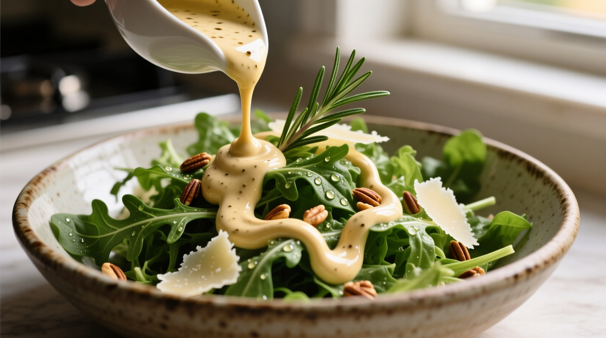 Такой соус способен превратить скромный пучок рукколы в полноценное блюдо, которое будет лёгким, элегантным и полным жизненной энергии. Ниже представлен простой рецепт заправки, которая раскроет всю палитру вкусов этой зелени.