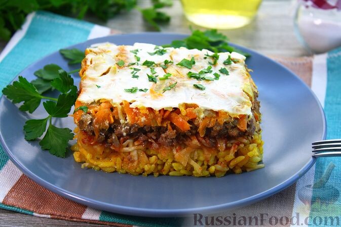 Запеканка с рисом, капустой и фаршем — это отличная альтернатива традиционным голубцам. В ней сочетаются отварной рис, свежая капуста и мясной фарш, приправленные обжаренными луком и морковью. Добавление карри придаст блюду неповторимый аромат, а соус из сметаны и томатной пасты сделает запеканку особенно сочной.