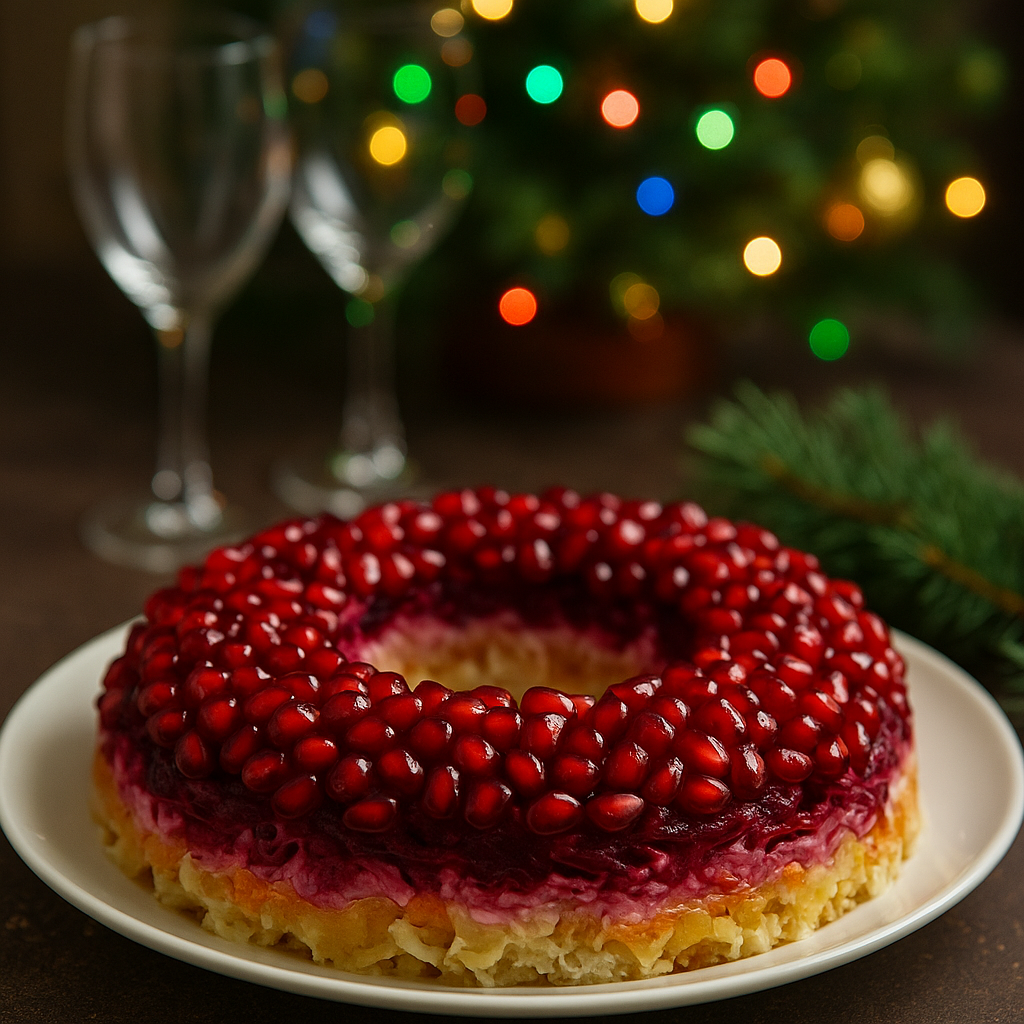 Салат «Гранатовый браслет» стал настоящей звездой новогодних застолий. Эта кулинарная находка не только удивит ваших гостей, но и станет настоящим украшением стола благодаря своему яркому виду и оригинальному вкусу.