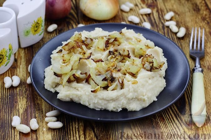 Фасолевое пюре с жареным луком и чесноком станет отменным дополнением к вашему столу. Для его приготовления нужно отварить фасоль до мягкости, а затем тщательно измельчить. Обжаренный лук и чеснок добавят пикантности, а тот факт, что фасоль — источник белка, делает блюдо ещё более питательным.