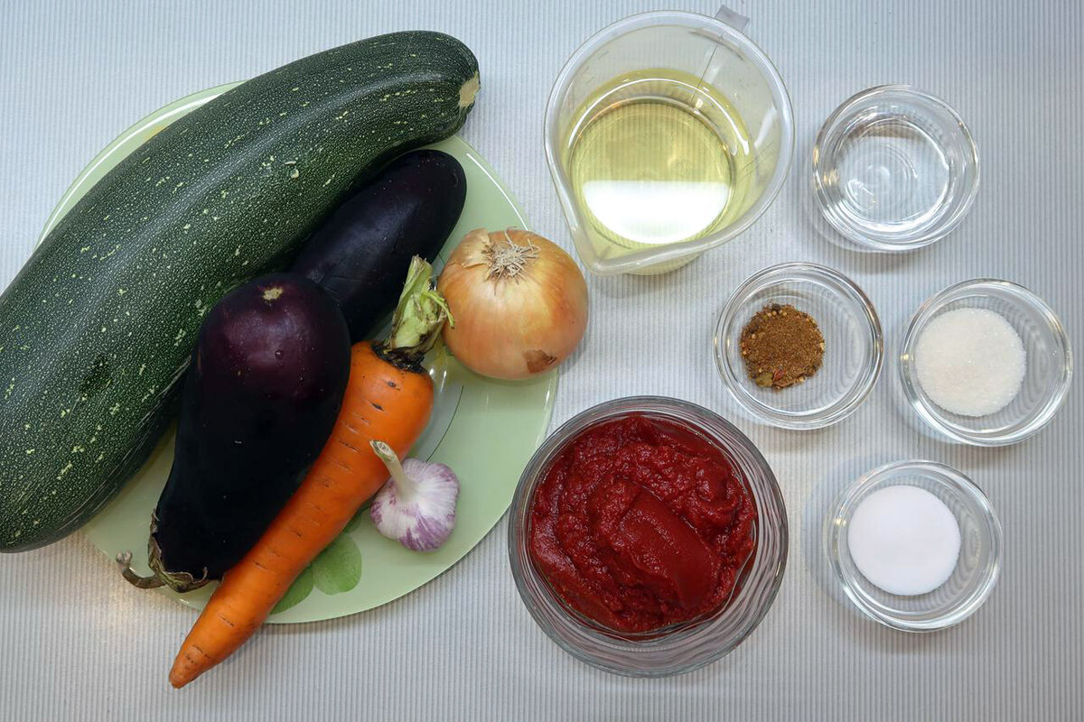 Для приготовления кабачково-баклажанной икры понадобятся следующие ингредиенты:
