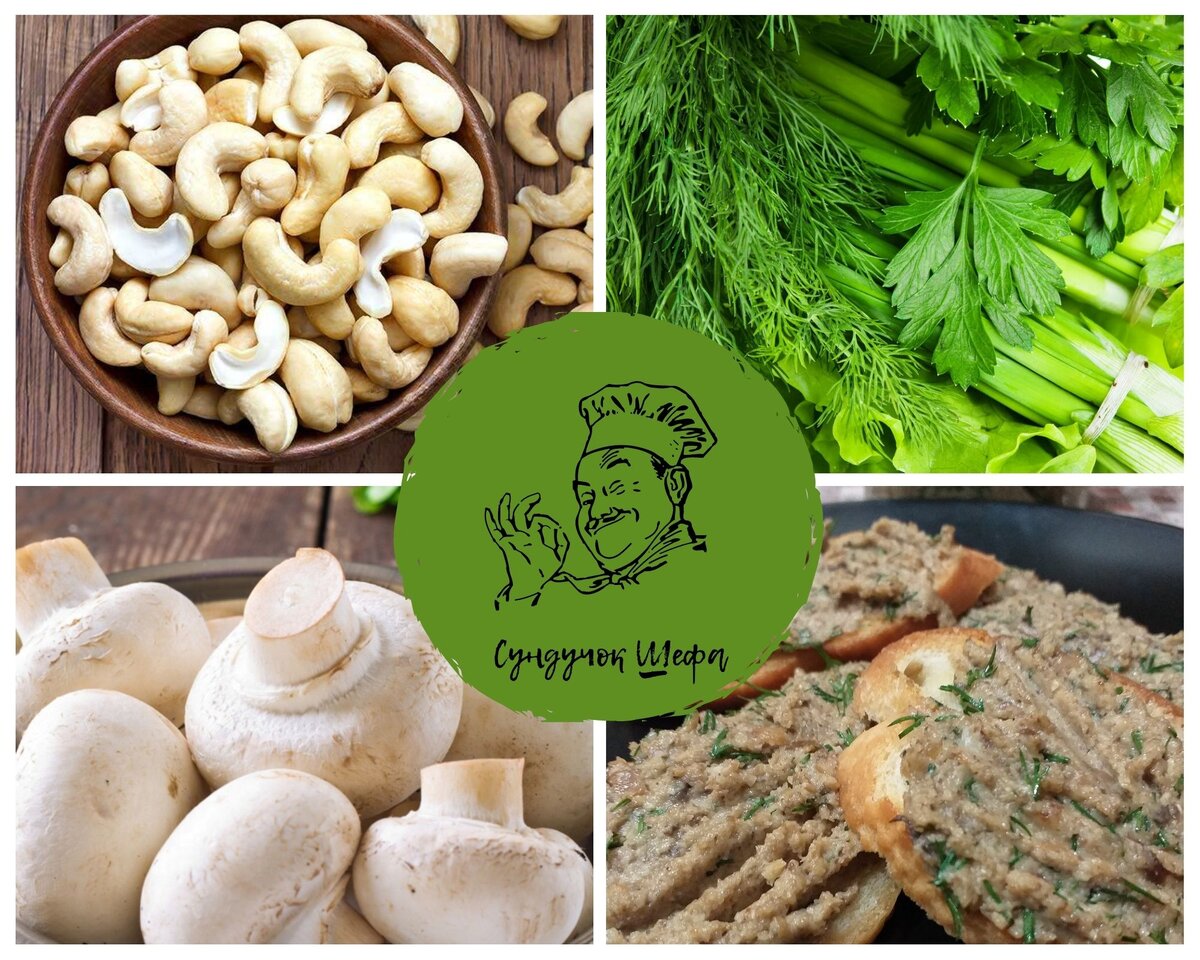 К грибам добавляем кешью, пробиваем до однородной консистенции, добавляем укроп и, при необходимости, еще раз приправляем.