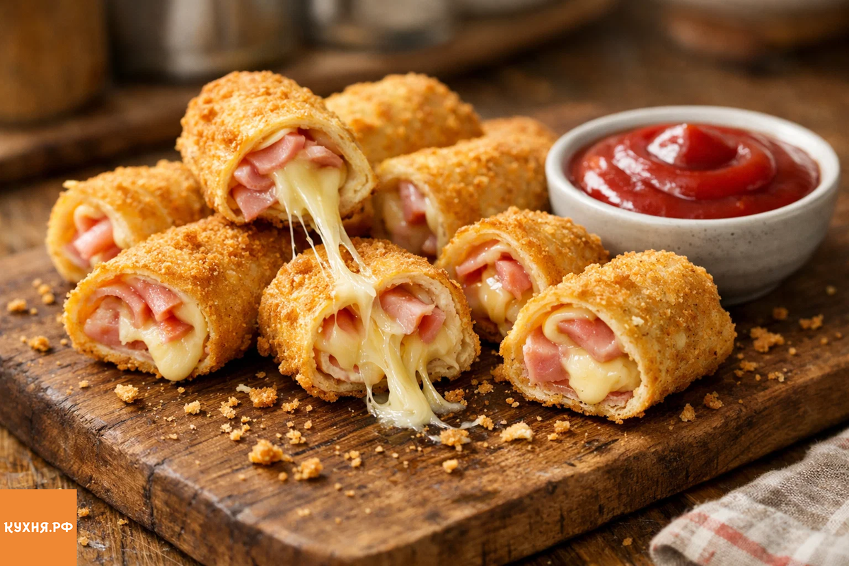 Всего через несколько минут вы будете наслаждаться хрустящими рулетиками с золотистой корочкой и тянущимся сыром внутри. Это идеальный вариант для перекуса, который легко держать в руках и сложно оторваться от одного кусочка.