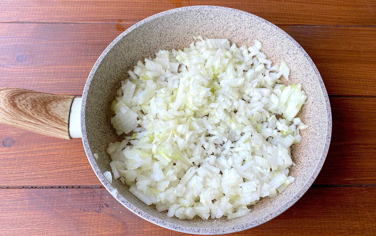 Для начала нужно нарезать лук на небольшие кусочки. Затем в сковороде разогреть растительное и сливочное масла, добавив туда нарезанный лук. Жарить его до золотистого цвета, постоянно помешивая, чтобы избежать подгорания.