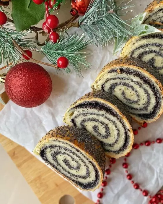 4. Раскатать охлажденное тесто и равномерно распределить начинку. Свернуть все в рулет.