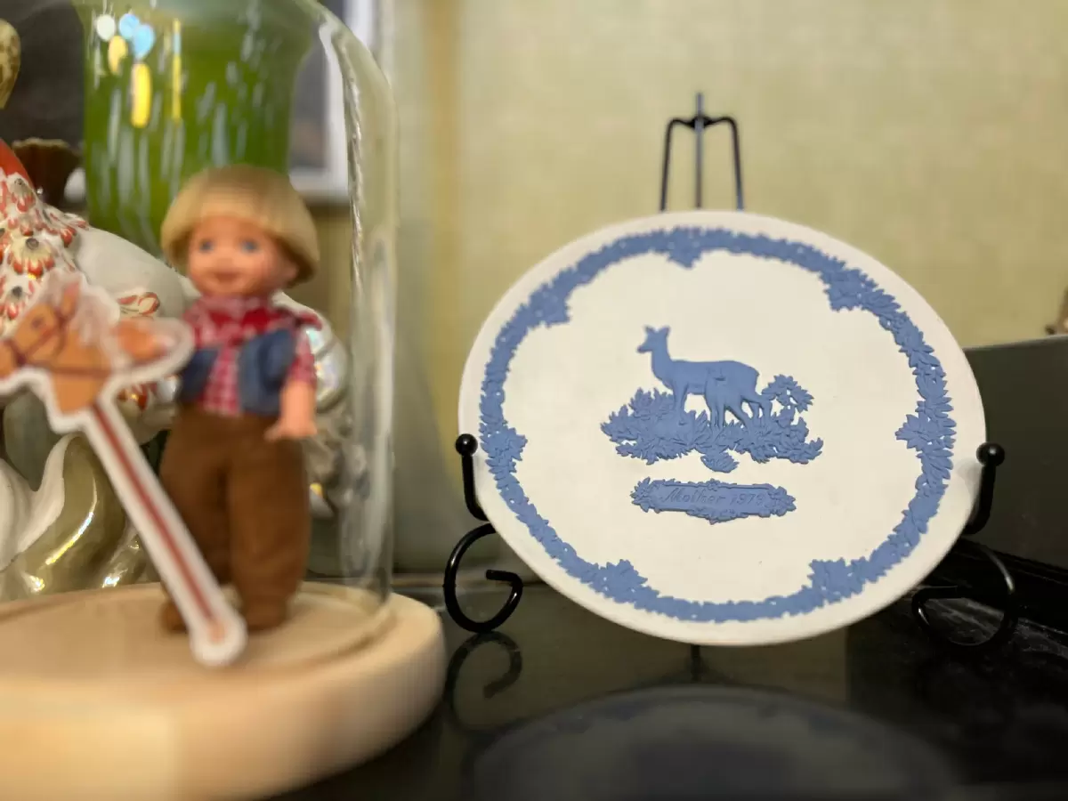 На День матери был преподнесён особый подарок — тарелочка из значимой коллекции яшмового фарфора, выпущенная в год рождения её сына. Неординарный выбор — голубое изделие на белом фоне, стал выразительным знаком внимания.