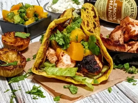 Хрустящие тако с ароматным лососем на гриле, яркой сальсой из манго и нежным авокадо под лимонным соусом — это идеальное блюдо, способное поднять настроение в любое время года. Эти легкие и красочные тако станут настоящим праздником для ваших вкусовых рецепторов!