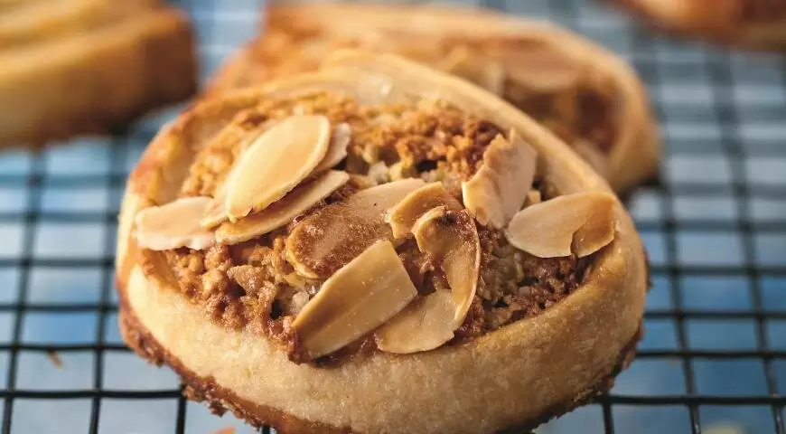 Шаг 6: Переложите печенье на противень, застеленный бумагой для выпечки, и выпекайте при температуре 190°C в течение 15 минут. В конце можно посыпать печенье миндальными лепестками и оставить в духовке еще на 10 минут для дополнительной золотистости.