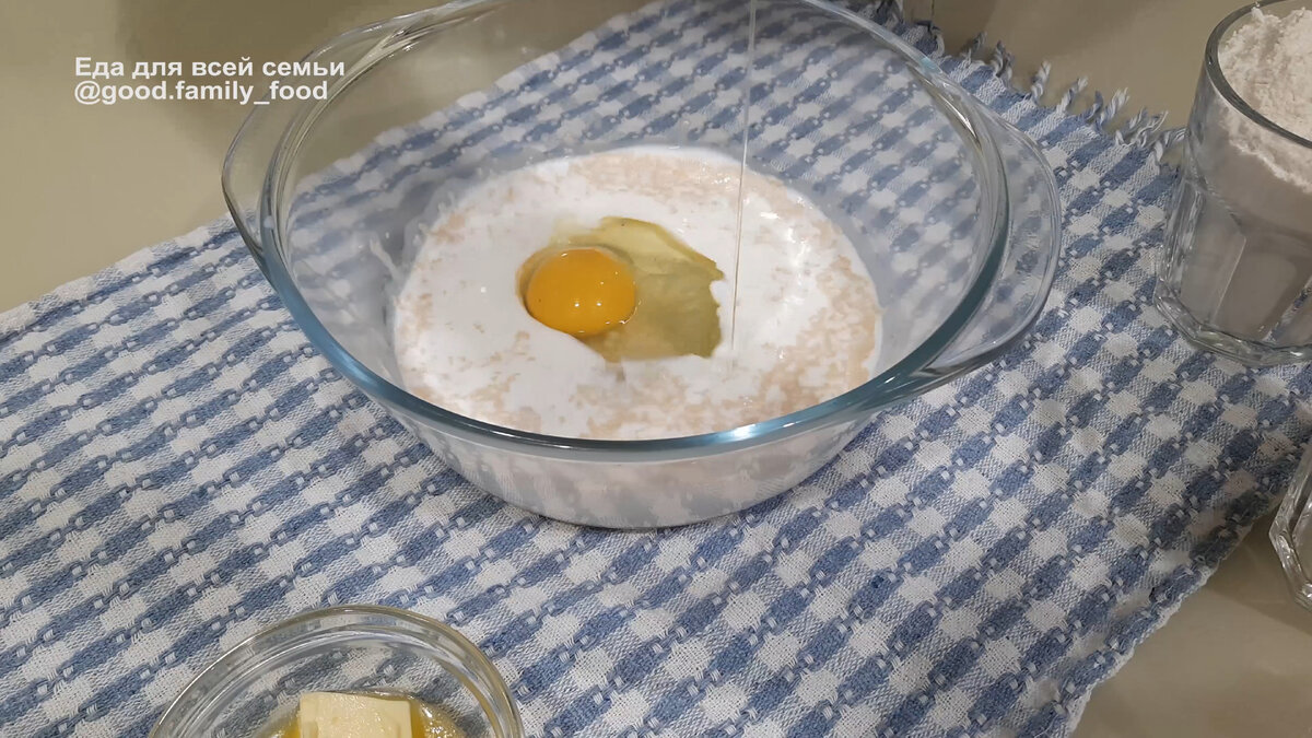 Для начала, в глубокой миске необходимо соединить теплое молоко, сахар, соль, дрожжи и яйцо. Хорошо перемешать все ингредиенты до получения однородной массы.