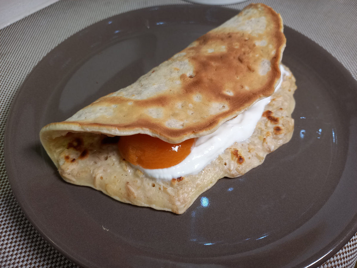 Такой блюдо не только богато белками, но и является вкусным и сытным вариантом завтрака. В 100 граммах овсяноблина, без учёта начинки, содержится: