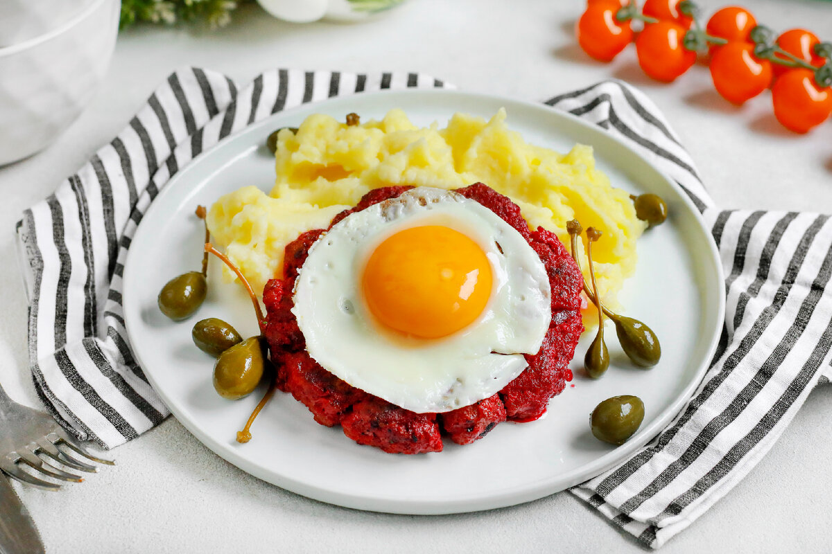Готовые бифштексы подавайте с картофельным пюре и каперсами, украсив блюдо глазуньей из яиц. Это великолепное сочетание не только порадует глаз, но и удивит гурманов своим необычным вкусом!
